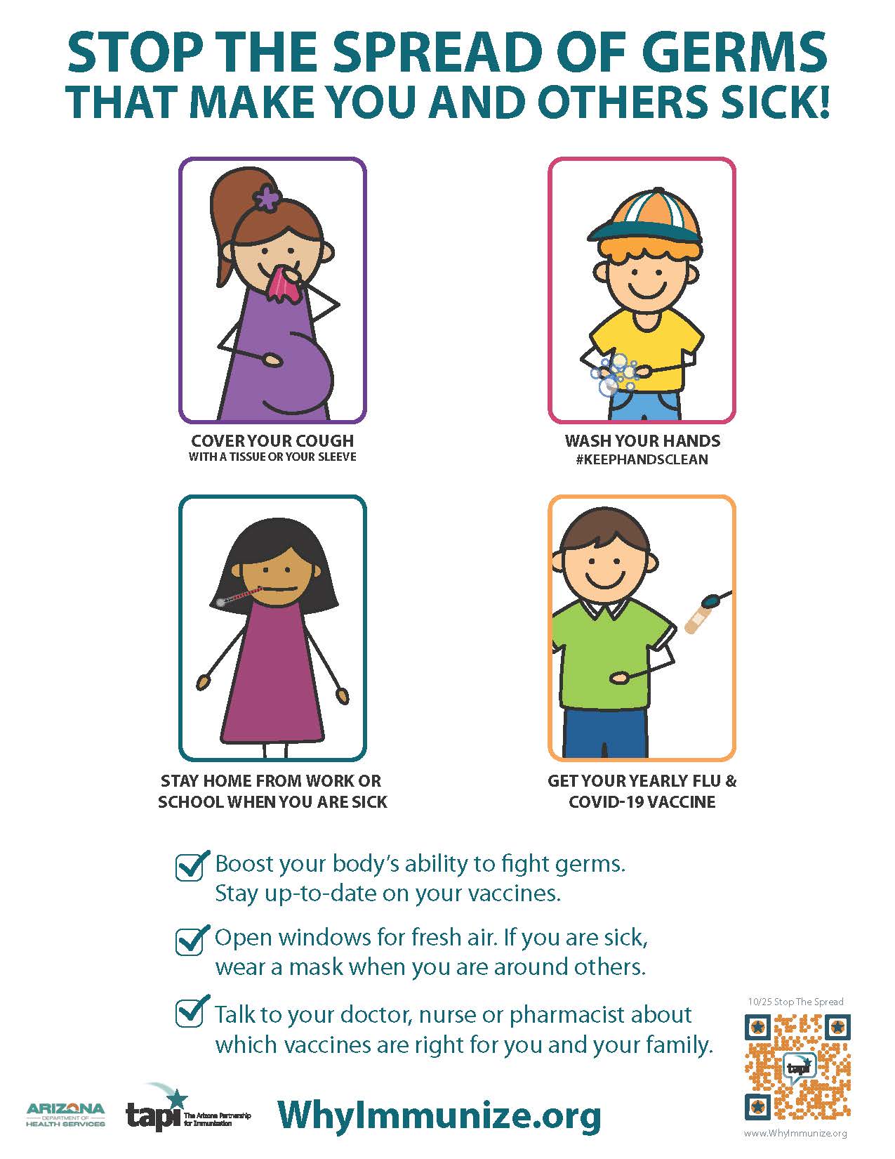 Information on how to stop the spread of germs (bilingual).