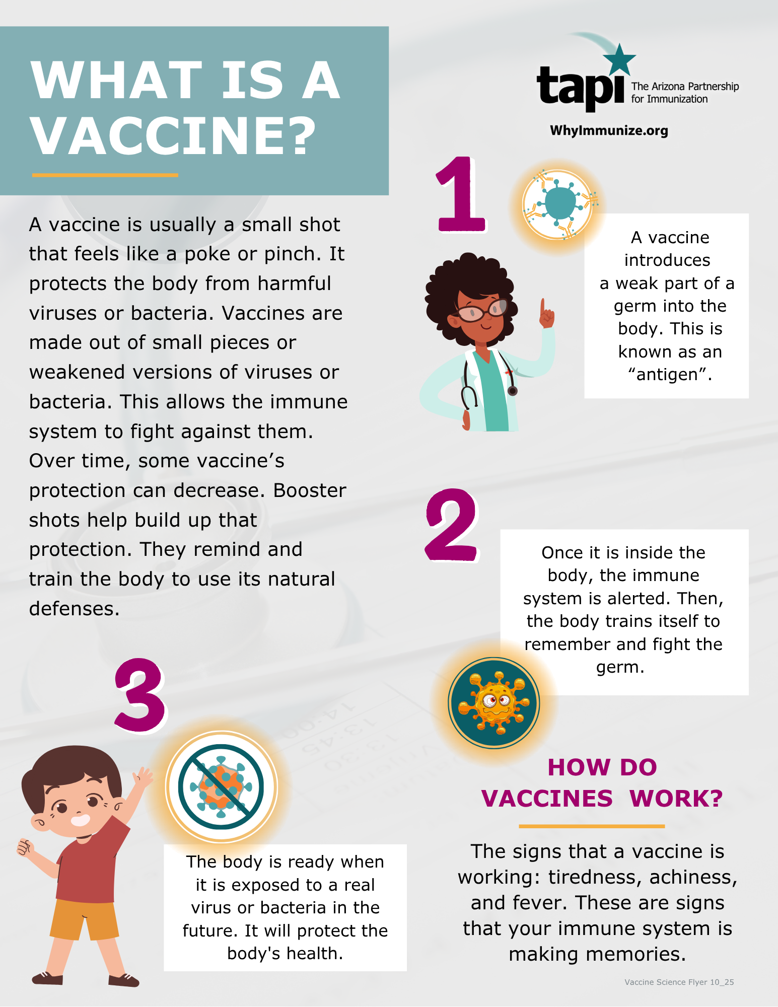 TAPI, in collaboration with the Arizona Department of Health Services Immunization Program, presents free training that improves immunization practices in public and private providers’ offices. Participants receive valuable information on immunization friendly office practices, vaccine handling, state requirements, how to give shots, and the state immunization registry. For more information or to see the schedule, visit our Provider Page or call 602-288-7568 for more information.